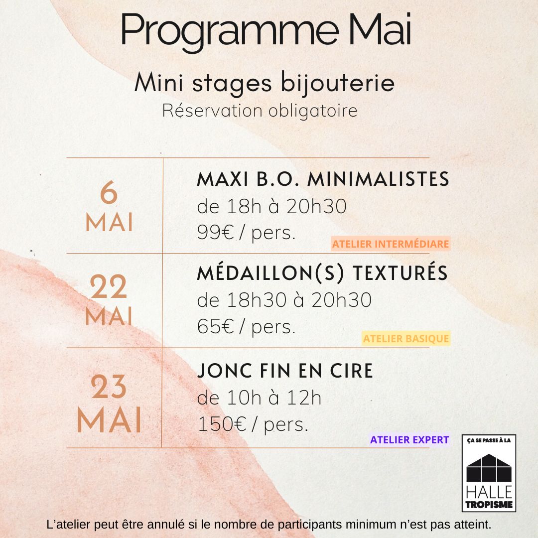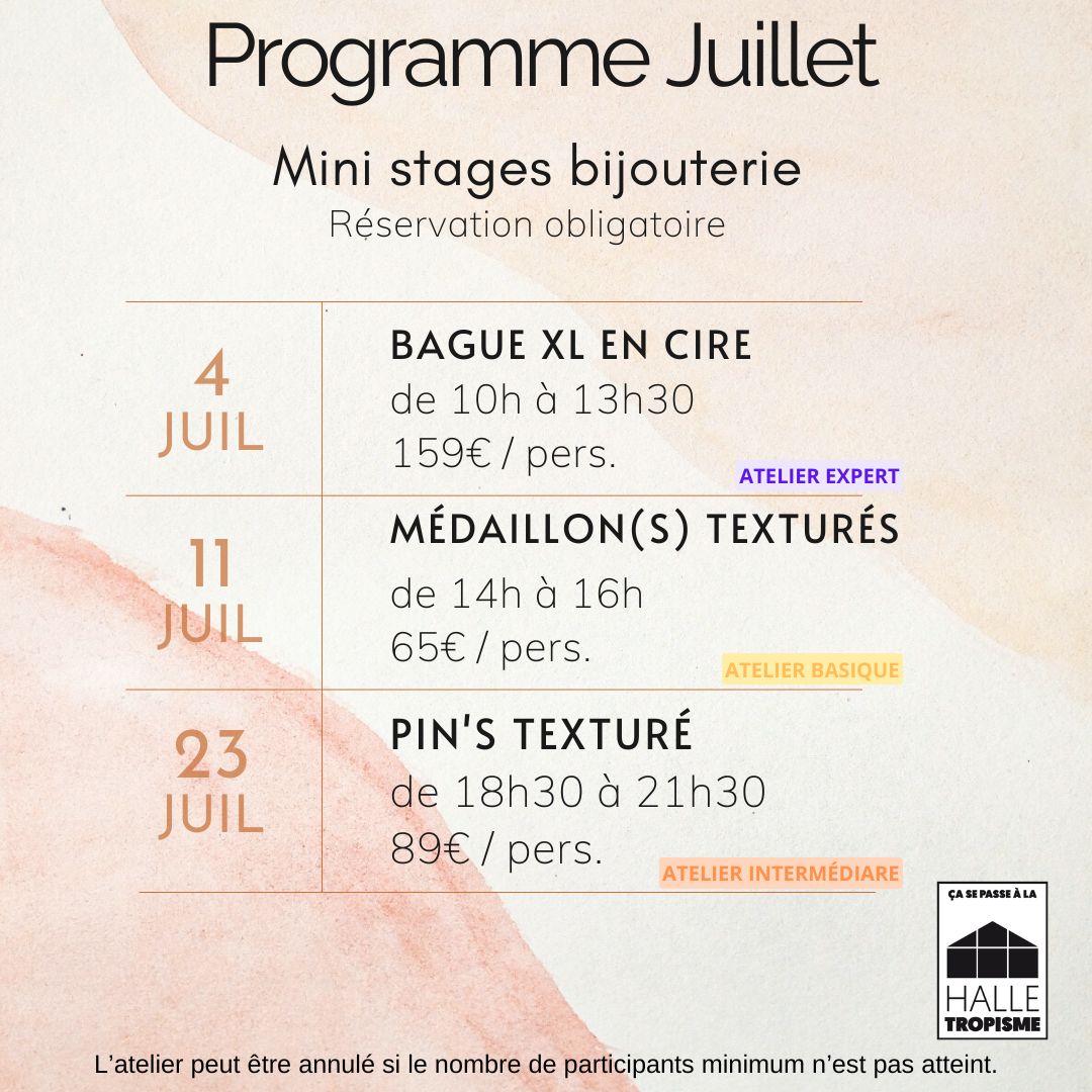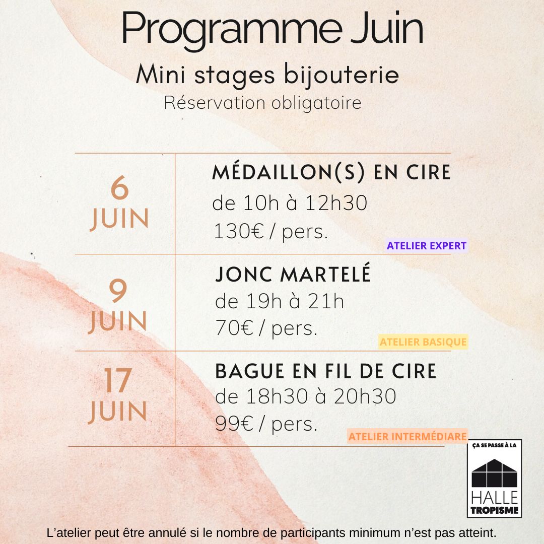 ⚠️ L’atelier peut être annulé jusqu’à 24h avant la date prévue si le nombre minimum de 3 personnes n’est pas atteint.