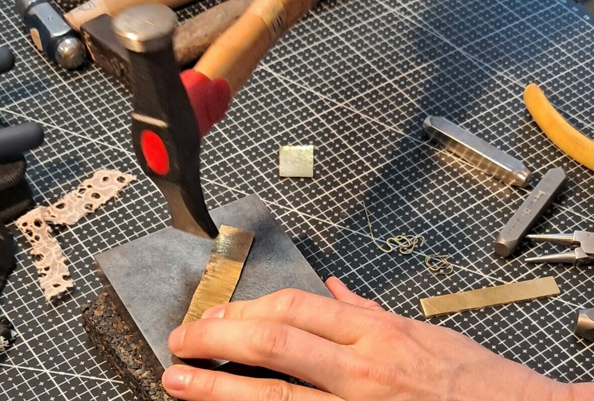 Durant 2h30, vous serez immergé.e dans l’univers du bijoutier, vous découvrirez les techniques pour fabriquer une bague large en laiton : martelez, texturez, soudez … vous vous familiariserez avec les outils du bijoutier pour commencer, puis place à la création. Repartez avec votre bijou