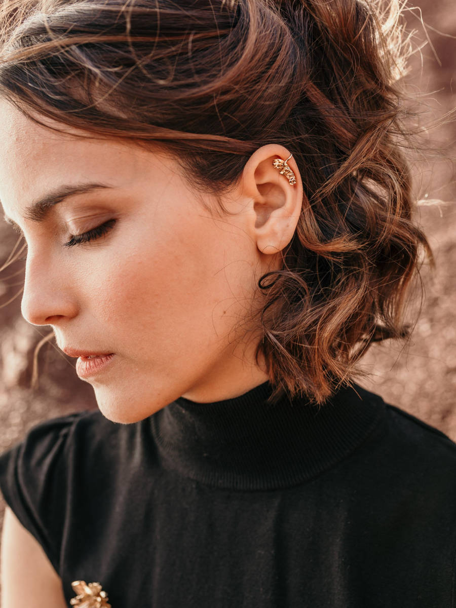 Le bijou d’oreille corolles Purse vous donnera sentiment que le métal peut ressembler à s’y méprendre au tissu. Les corolles imitent à la perfection la délicatesse des fleurs décoratives en tissus. Ce bijou très original sublimera même les oreilles non percées. Vous allez être subjuguée par le détail à vos oreilles.