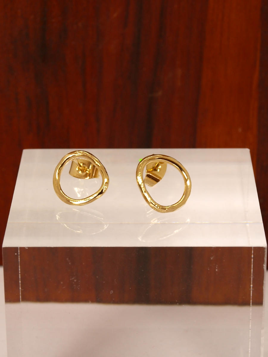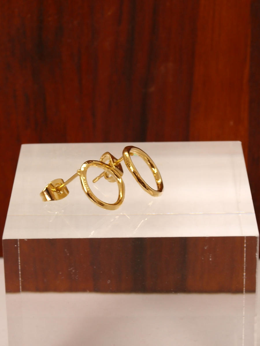 Les boucles d’oreilles recyclées 11 sont uniques par l’effet de martelage brut et leur forme originale discrète.