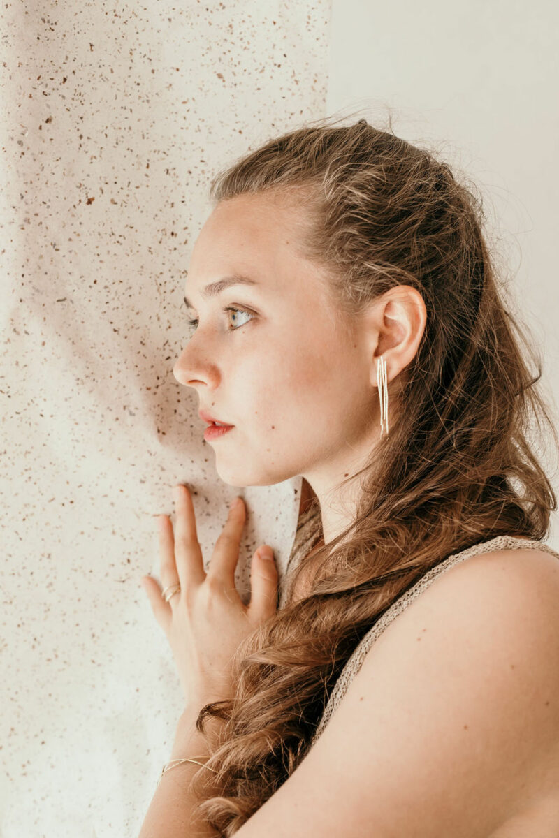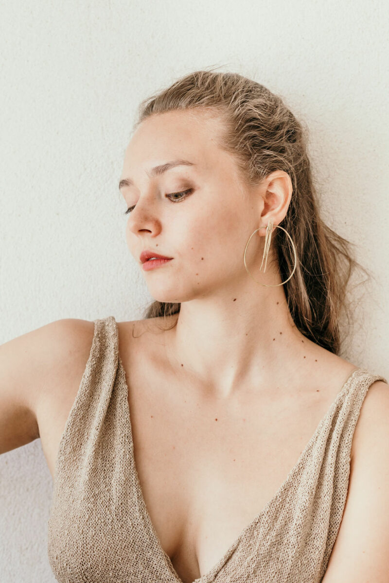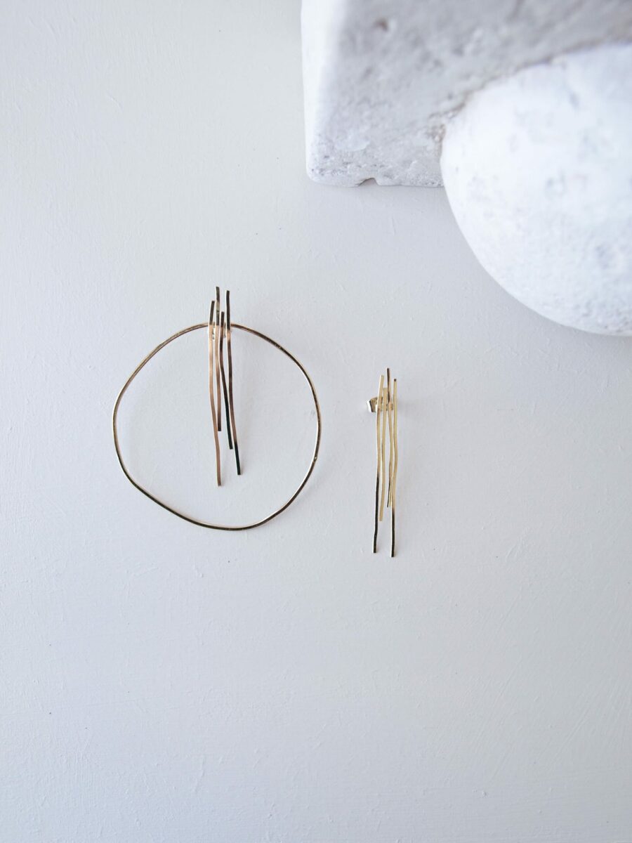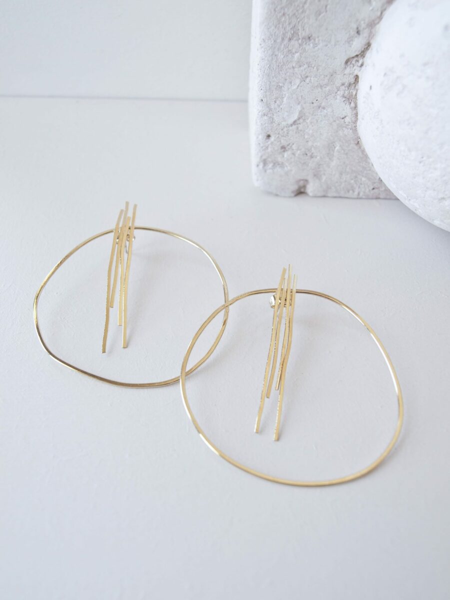 Les boucles d’oreilles barres minimalistes Segment matérialisent un tracé au feutre à main levée. Les lignes sans fin laissent notre imagination voguer au rythme des traits.