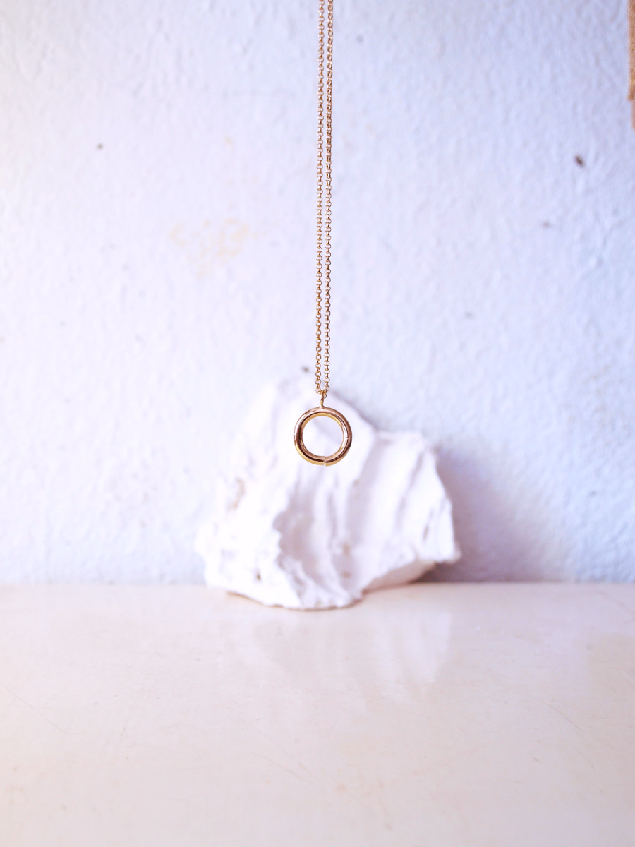 Le collier intemporel GÉ puise sa force dans la pureté de sa forme circulaire. Symbole d’harmonie et de continuité, il reflète le pouvoir du bijou comme ancrage intérieur. Suspendu à une fine chaîne, son pendentif doré à l’or fin épouse le mouvement du corps et se porte au quotidien comme un talisman discret.