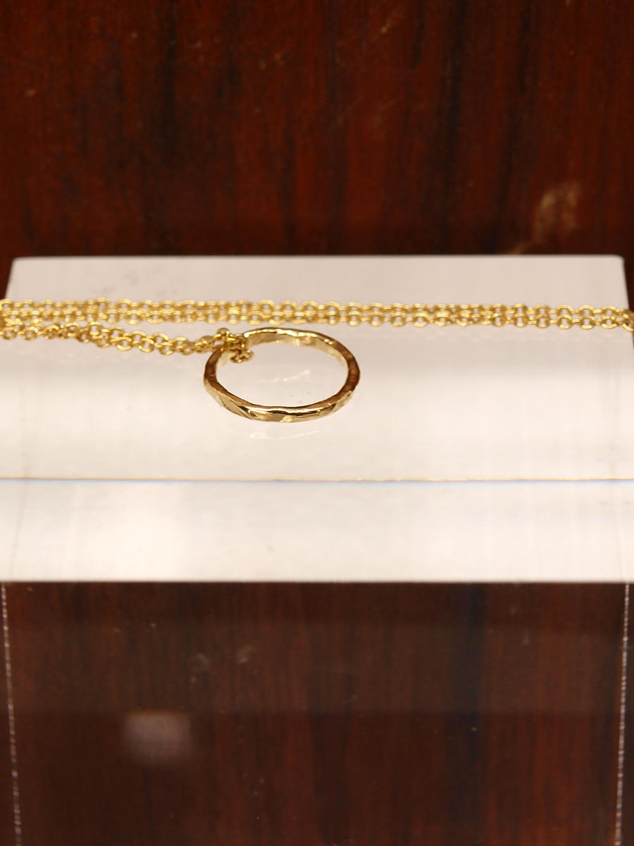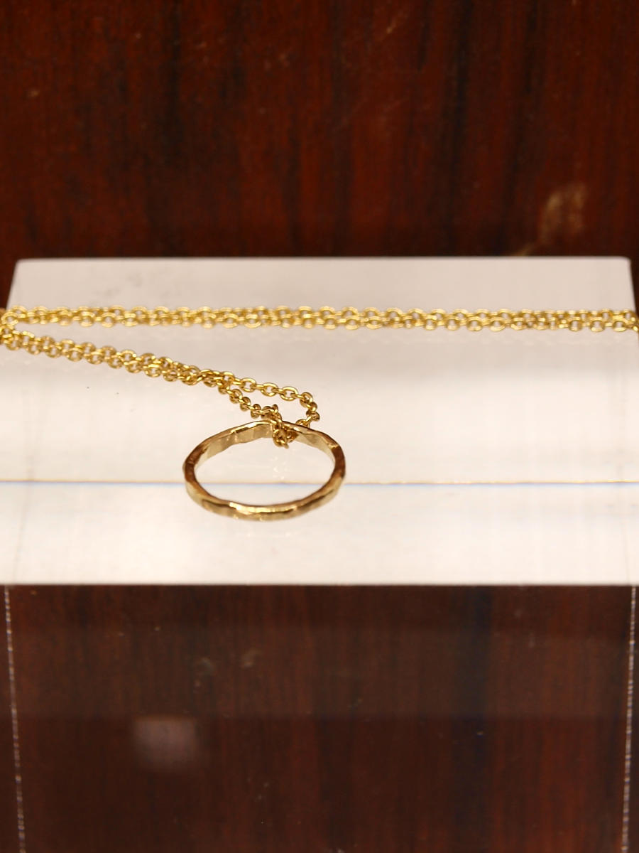 Le collier au pendentif recyclé 81 est unique par sa simplicité brute.