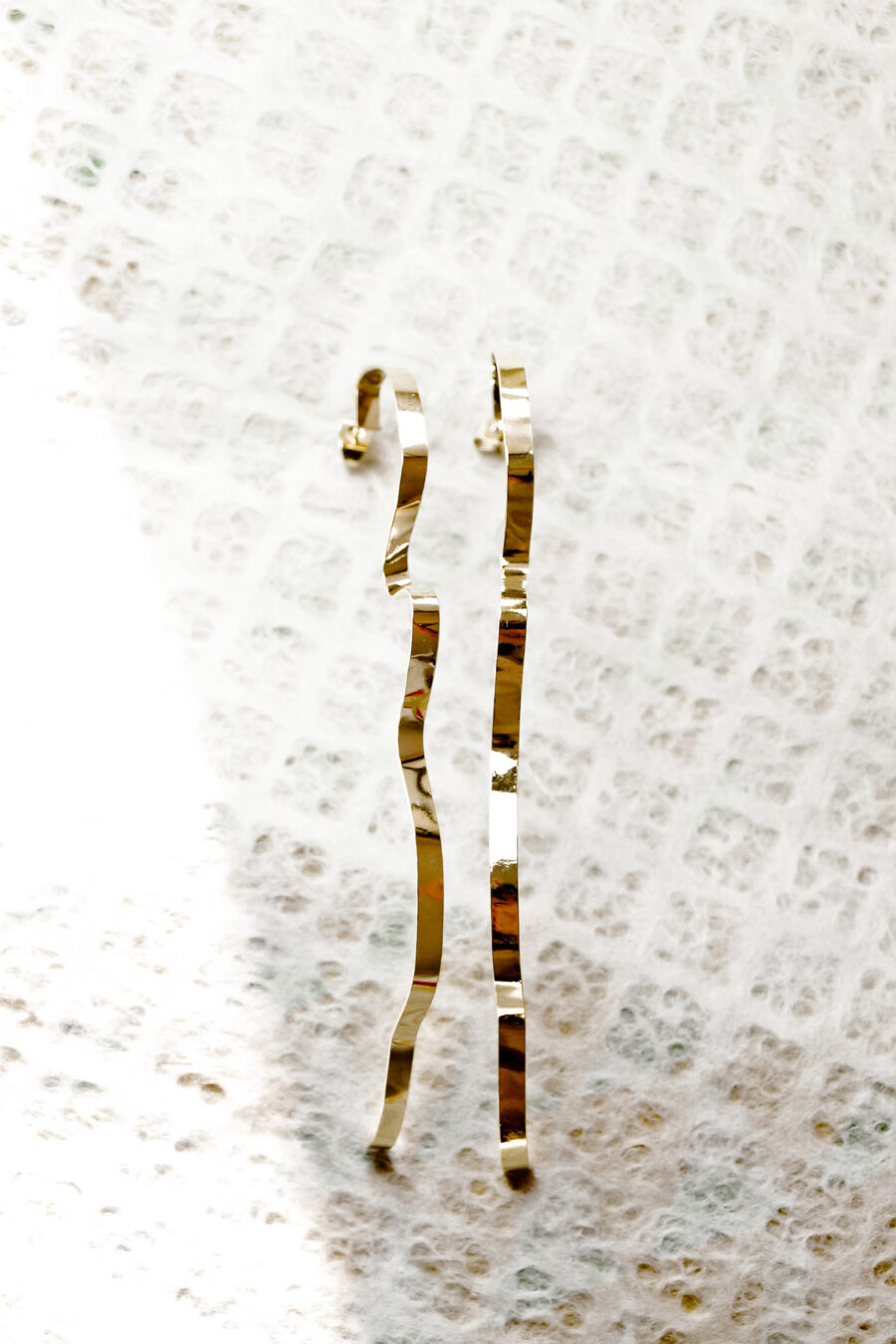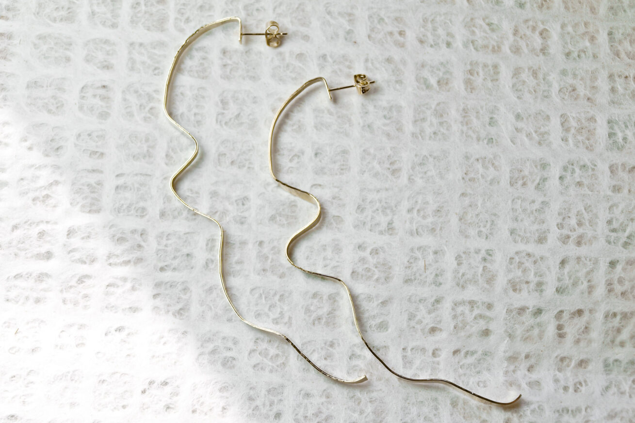 Les maxi boucles d’oreilles abstraites Ribbon illustrent le mouvement d’un ruban au vent. Elles sont mises en forme à la main pièce par pièce ce qui les rend totalement uniques. Mises en valeurs par les oreilles dégagées, elles sublimeront votre port de tête en toute occasion.