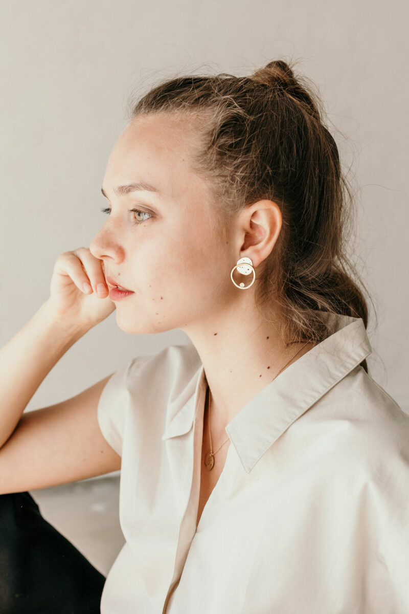 Le pendant Cieux évoque un univers imaginaire et poétique. L’élément au motif différent pour chaque pièce est entièrement réalisé à la main, pour apporter à vos boucles d’oreilles une touche de poésie et d’onirisme.
