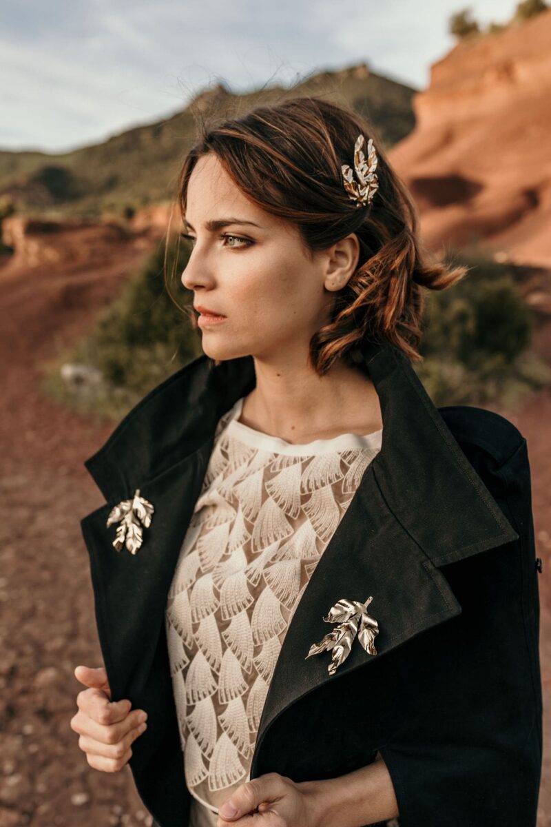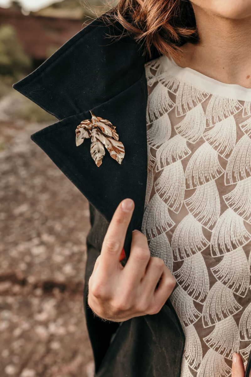 Le pin’s feuille de pivoine Shima est le bijou qu’il vous faut pour pimper votre pull, votre chemise ou votre manteau. La feuille découpée à la main en fait un bijou unique et raffiné. Porté seul sur un pull ou en duo sur la chemise, il fera sensation à coup sûr! Si vous cherchez un bijou pas trop personnel, c’est celui-ci qu’il vous faut.