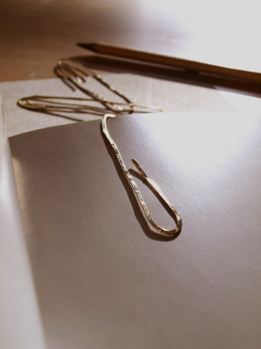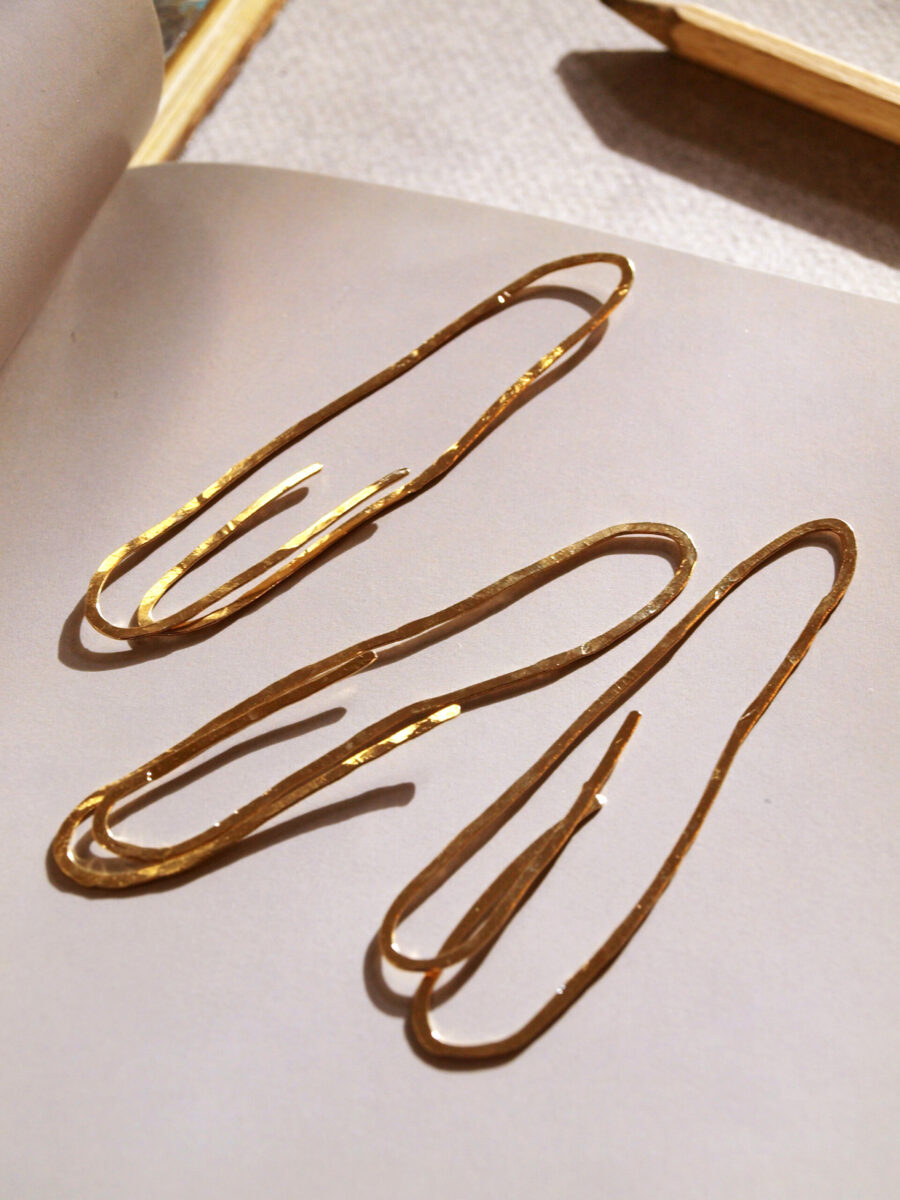 Élevez l’art de la lecture avec ce trombone géant marque-page en laiton doré à l’or fin 24 carats, façonné et martelé à la main pour capturer chaque reflet de lumière. Plus qu’un simple marque-page, c’est une pièce d’exception qui allie élégance et savoir-faire artisanal. Son design minimaliste et intemporel transforme vos livres en objets précieux, accompagnant chaque page avec raffinement et authenticité.
